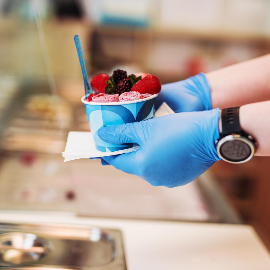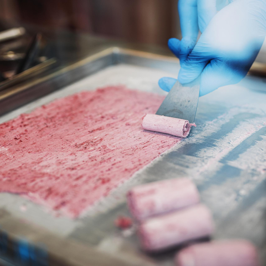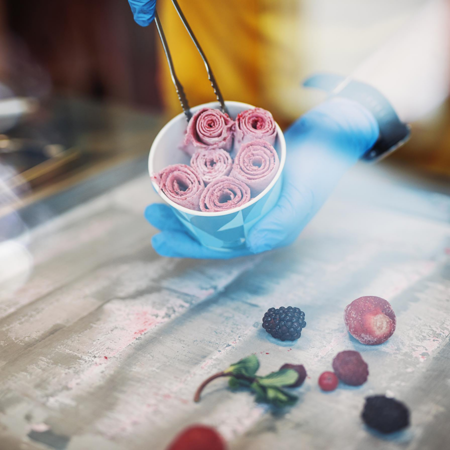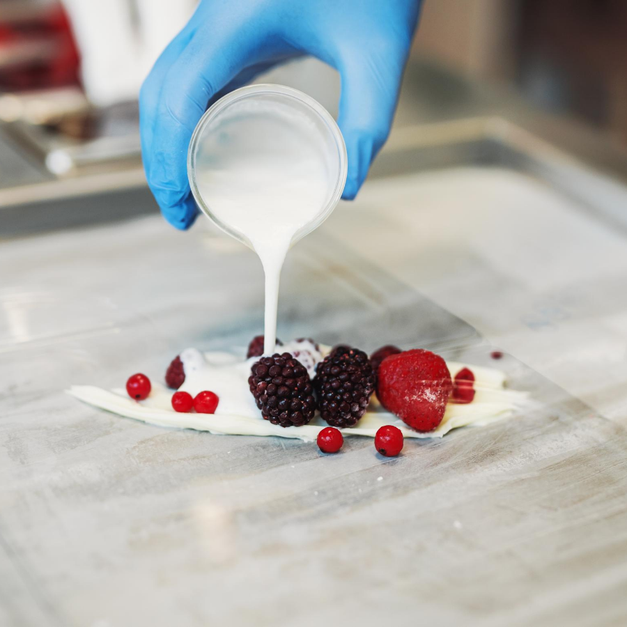 Propose quelque chose de très original pour ton événement : des frozen rolls ! Une glace produite instantanément sous les yeux de tes invités ! Verse le mélange de glace ainsi que les ingrédients et saveurs à choix sur une plaque à -30 degrés, « hache » le tout avec les spatules fournies et étale le une fois le mélange homogène. Enroule enfin la glace à l’aide des spatules et sers dans des petits gobelets.