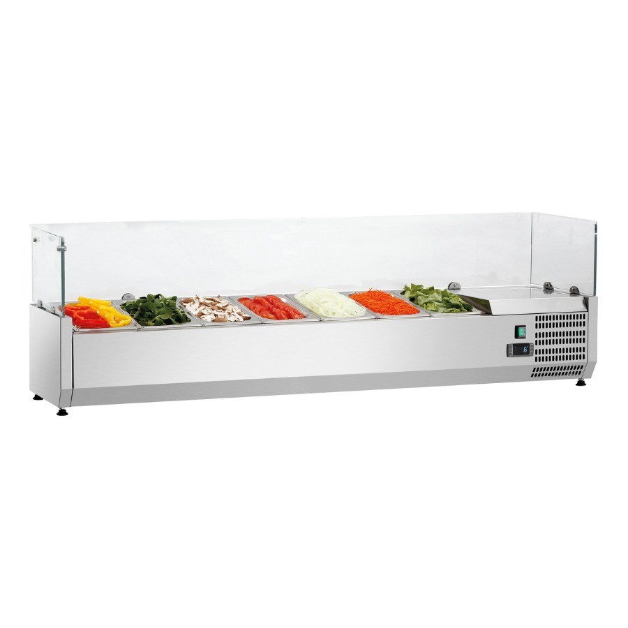 Présente tes ingrédients de manière originale grâce à cette vitrine froid un peu originale. Tu peux en effet choisir la couleur de l’éclairage du tour grâce à la télécommande fournie. 10 bacs en plastique et 4 plaques en inox sont fournis avec cette vitrine.