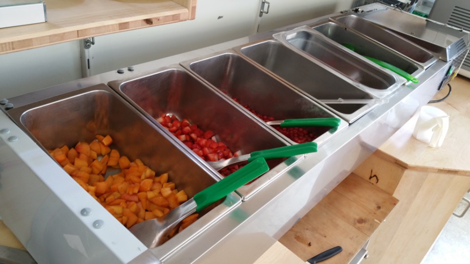 Utilise cette vitrine pour mettre en valeur tes aliments frais : fruits, salades, etc.